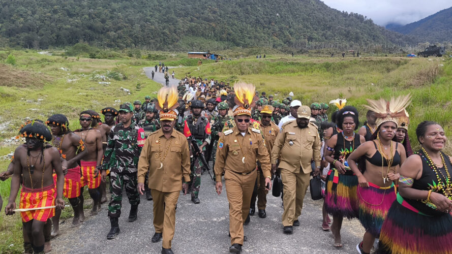 Terlihat juga dalam rombongan, Kapolres Puncak Kompol Mardi Marpaung, Dandim 1717/Puncak Letkol Inf. Himawan Ady S, serta Kepala Bank Papua cabang Ilaga Pincap Daniel Anggiluly.