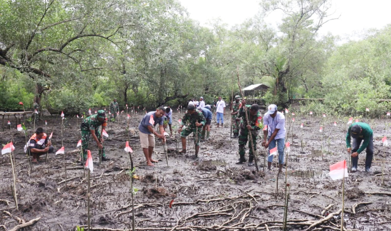 Kegiatan ini dipimpin Danunit Kodim 1709/Yawa, Letda Inf Esron Ruru. Ia menjelaskan, penanaman pohon mangrove merupakan program Komando Atas yang dilaksanakan serentak oleh jajaran Kodim 1709/Yawa di seluruh wilayah binaan.