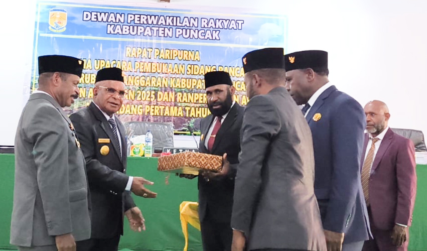 Hal ini disampaikan Ketua DPRK Puncak Thomas Tabuni saat membuka Rapat Paripurna Pertama Upacara Pembukaan Sidang Rancangan Perubahan Anggaran Pendapatan dan Belanja Daerah (APBD) Kabupaten Puncak, Tahun Anggaran 2025 dan Ranperda Non APBD Masa Sidang Pertama 2025, di ruang sidang DPRK Puncak, Ilaga, Selasa,16 September 2025.