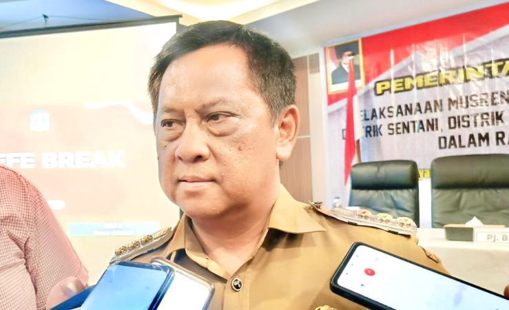 Penjabat Bupati Jayapura, Semuel Siriwa saat diwawancara wartawan. (Foto dok: jayapurakab.go.id)