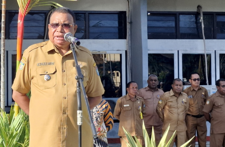 Bupati Benyamin juga meminta ASN fokus pada perencanaan anggaran yang akurat dan transparan.Arahan tersebut disampaikan Bupati Benyamin Arisoy saat memimpin apel gabungan di halaman kantor Sekretariat Daerah, Senin 28 Juli 2025 yang dihadiri oleh pimpinan Organisasi Perangkat Daerah (OPD) dan ASN di lingkungan Pemerintah Kabupaten Kepulauan Yapen.