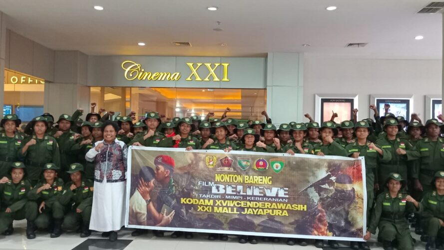 Para siswa diajak nonton bareng (nobar) Film Believe : Takdir, Mimpi, dan Keberanian di studio XXI Jayapura, Kamis 24 Juli 2025.