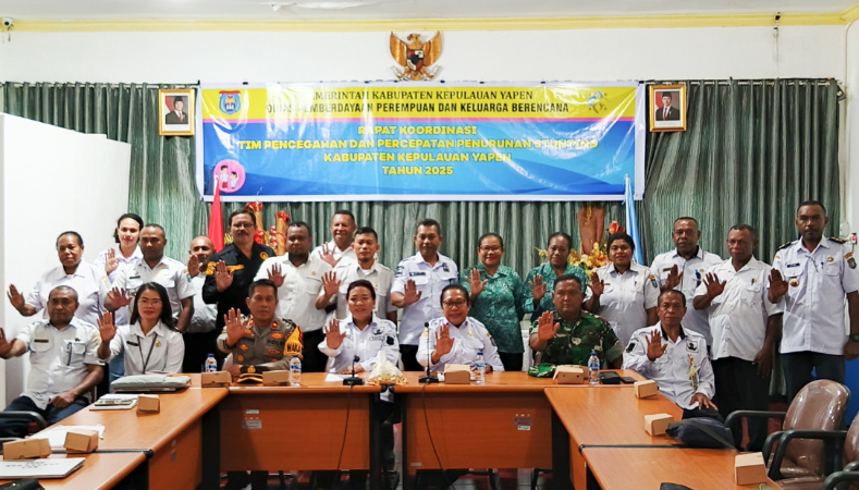 Foto bersama usai Rakor Pertama Evaluasi Aksi dan Persiapan Konvergensi 1-8 Tahun dalam rangka Percepatan Penurunan Stunting Tahun 2025. (Foto dok: Humas Pemkab Kepulauan Yapen)