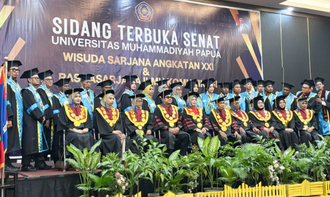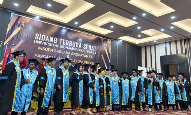 KABARPAPUA.CO, Kota Jayapura – Universitas Muhammadiyah Papua (UM Papua) mencetak sejarah baru sebagai perguruan tinggi pertama di wilayah Papua, yang melahirkan lulusan Magister atau Program Pascasarjana (S2) Ilmu Komunikasi untuk pertama kalinya.