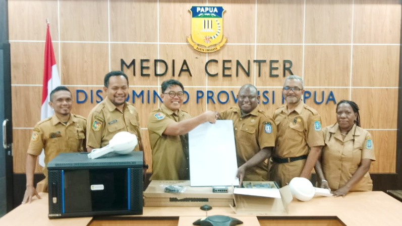 Penyerahan bantuan perangkat starlink tersebut diserahkan langsung Kepala Diskominfo Papua, Jeri Agus Yudianto kepada Kepala Diskominfo Jayapura Gustaf Griapon yang didampingi Kasie Pengembangan Infrastruktur Tekno dan Integrasi dan Sistem Informasi, Aminadap Reniban dan Kasie Keamanan Informasi dan Persandian, Marthince Sagisolo, di ruang media center, Kantor Diskominfo Papua, Selasa, 10 Juni 2025.