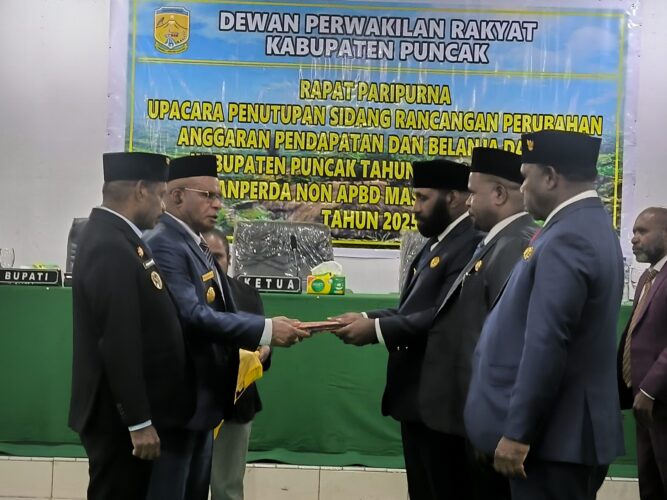 KABARPAPUA.CO. Ilaga- DPR Kabupaten (DPRK) Puncak menyetujui Rancangan Perubahan Anggaran Pendapatan dan Belanja Daerah 2025 untuk ditetapkan menjadi Perubahan Anggaran Pendapatan dan Belanja daerah Kabupaten Puncak Tahun 2025 sebesar Rp1,801 triliun.