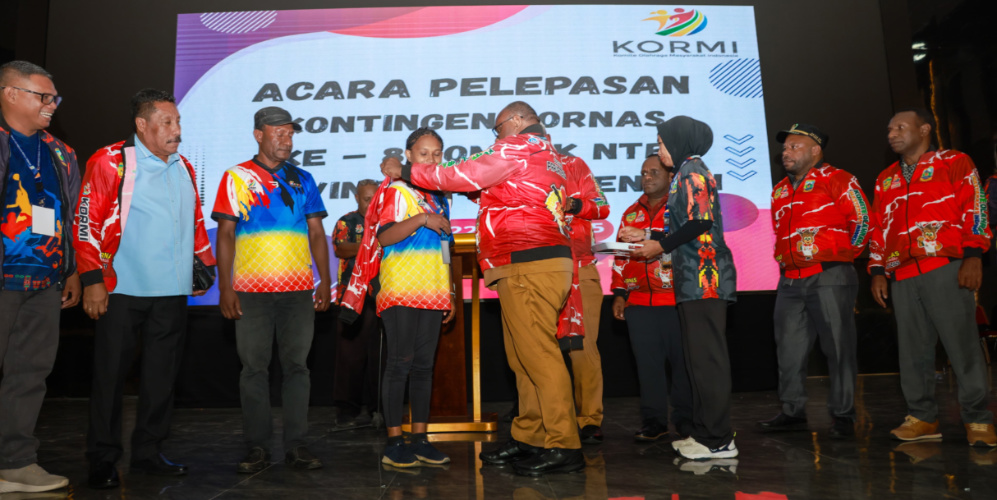 Gubernur Papua Tengah, Meki Nawipa melepas kontingen FORNAS ke NTB. Foto: ist Perbesar