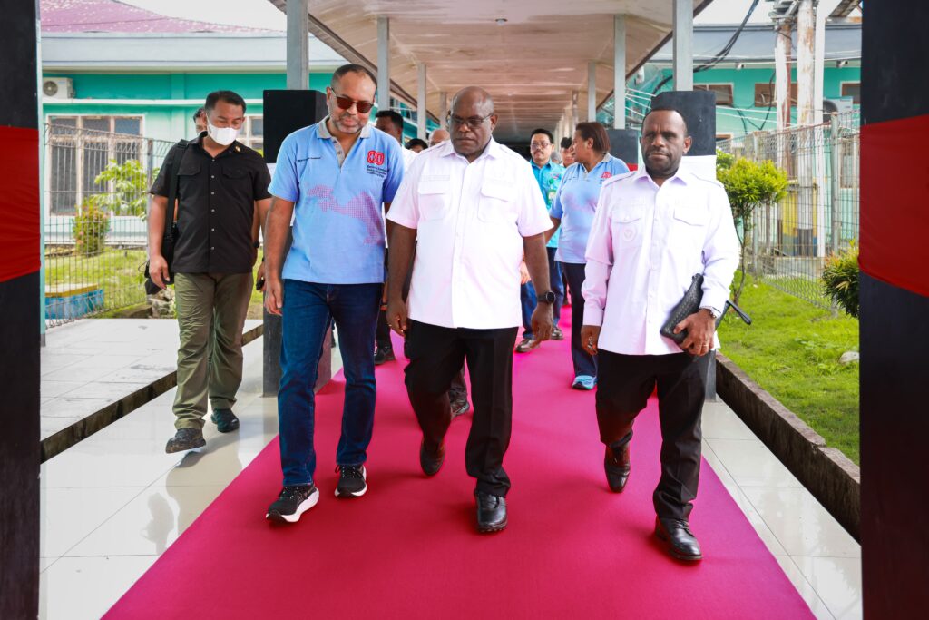Gubernur Papua Tengah, Meki Nawipa bersama Director & Executive Vice President (EVP) Sustainable Development PTFI, Claus Wamafma di sela-sela kegiatan operasi katarak di Nabire. Foto: Humas PPT