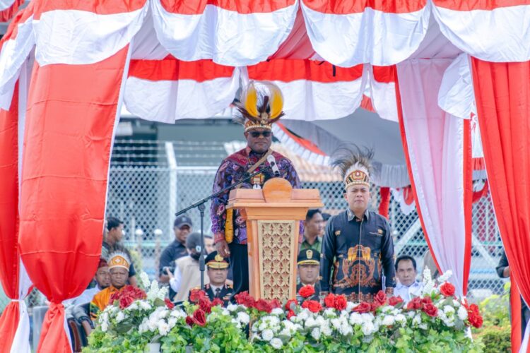 Gubernur Papua Tengah, Meki Nawipa saat memimpin upacara Hari Lahirnya Pancasila 1 Juni 2025. Foto: Humas Pemprov Papua Tengah.
