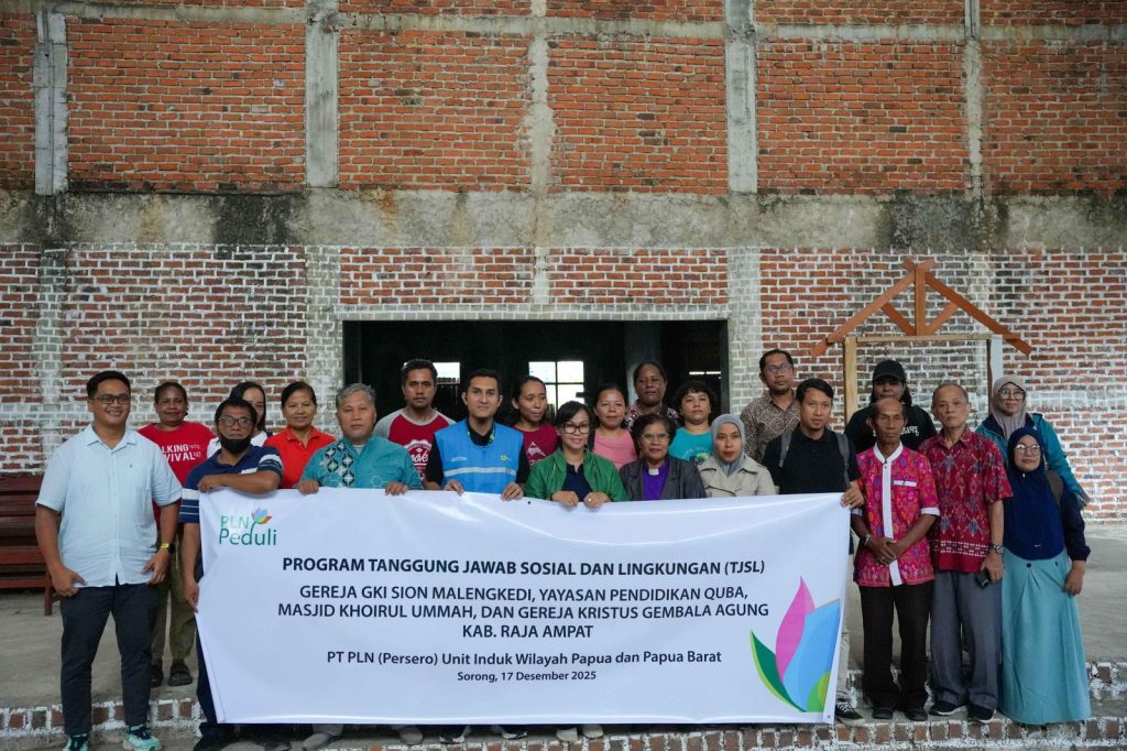 KABARPAPUA.CO, Sorong– PT PLN (Persero) menyalurkan bantuan Tanggung Jawab Sosial dan Lingkungan (TJSL) untuk pembangunan 4 rumah ibadah di Provinsi Papua Barat Daya. Penyerahan bantuan dilaksanakan secara simbolis di Gereja GKI Sion Malaingkedi, Kota Sorong, pada Rabu 17 Desember 2025.