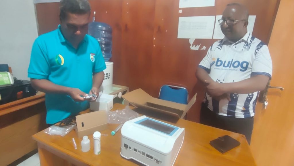Dengan uji cepat digital menjelaskan sampel beras yang diambil dari pasar dan toko diuji langsung menggunakan alat rapid test digital dan hasil analisis laboratorium menunjukkan beras di Yapen negatif bahan kimia berbahaya.