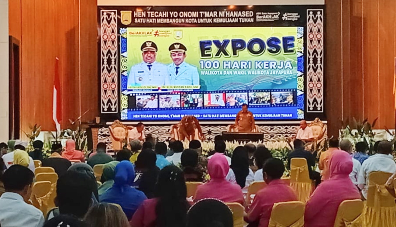 Expose 100 Hari Kerja Wali Kota Jayapura Abisai Rollo dan Wakil Wali Kota Jayapura Rustan Saru ini dihadiri Ketua Dewan Perwakilan Rakyat Kota Jayapura, tokoh agama, tokoh masyarakat dari berbagai paguyuban, dan para OPD di Pemerintah Kota (Pemkot) Jayapura.