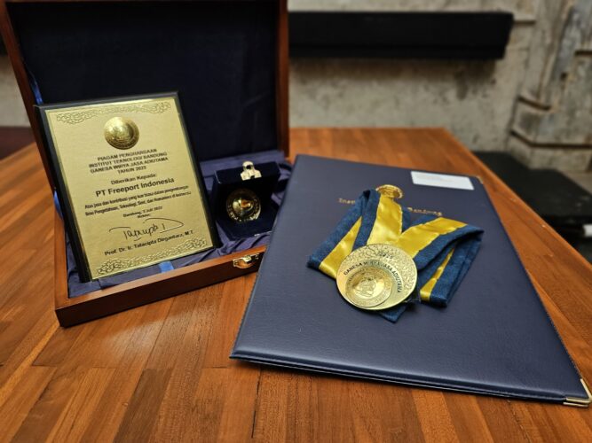 PT Freeport Indonesia (PTFI) meraih Penghargaan Ganesa Wirya Jasa Adiutama dari Institut Teknologi Bandung (ITB) sebagai mitra strategis jangka panjang. Foto: PTFI