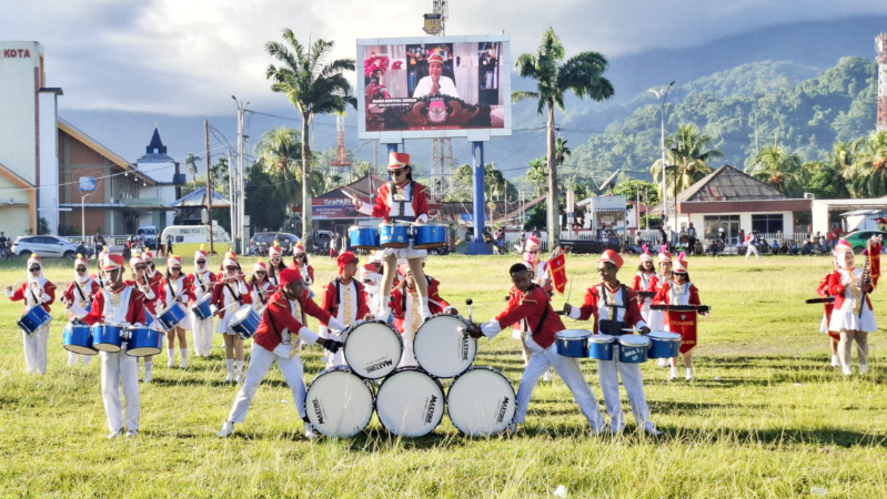 Jelang HUT ke-80 RI, Parade Drumband Pelajar Ramaikan Jalanan di Serui