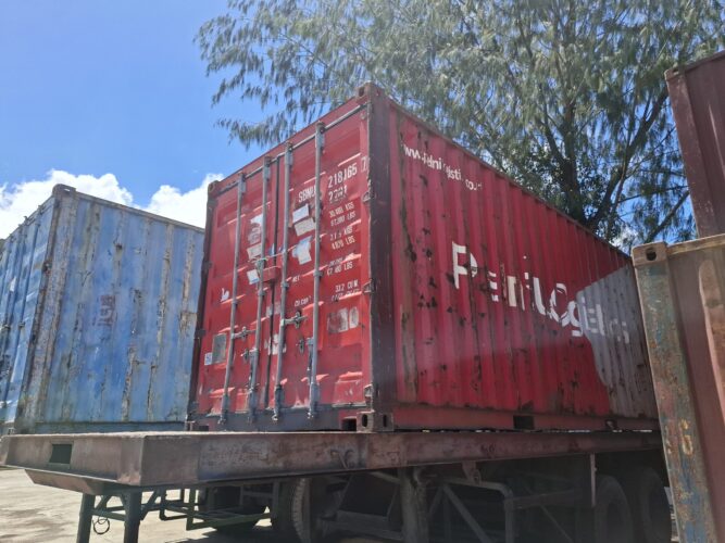 Kontainer yang berada di Pelabuhan Serui. Foto: Ainun Faathirjal/KabarPapua.co Perbesar