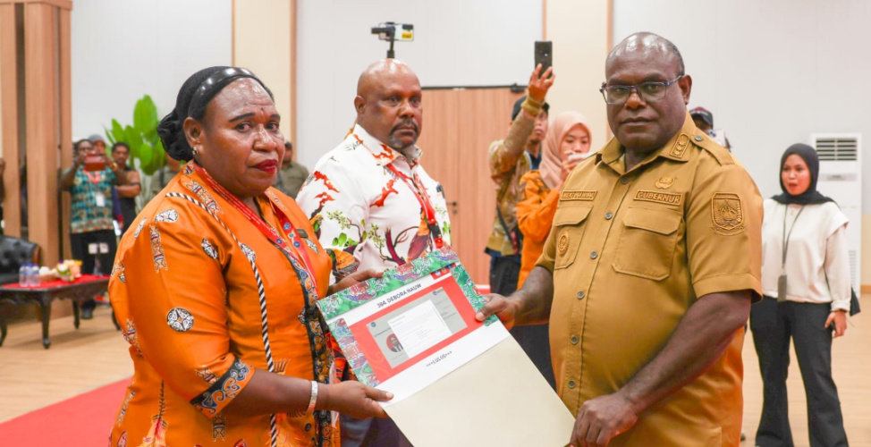 KABARPAPUA.CO, Nabire– Gubernur Papua Tengah, Meki Nawipa menyerahkan Surat Keputusan (SK) Kelulusan bagi 801 tenaga pendidik yang telah berhasil menyelesaikan Program Pendidikan Profesi Guru (PPG). Penyerahan SK dilakukan di Ballroom Kantor Gubernur, Selasa 6 Januari 2026.