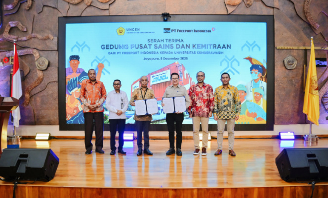 KABARPAPUA.CO, Kota Jayapura – Presiden Direktur (Presdir) PT Freeport Indonesia (PTFI) Tony Wenas secara resmi menyerahterimakan fasilitas Gedung Pusat Sains dan Kemitraan Universitas Cenderawasih (Uncen) kepada Rektor Uncen Oscar O. Wambrauw di Kota Jayapura, Papua, Senin, 8 Desember 2025.