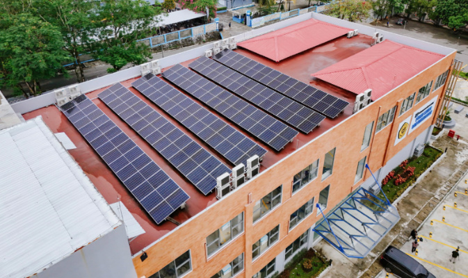 Gedung tiga lantai ini menggunakan solar panel yang bukan hanya menghemat energi, tetapi juga menjadi sarana belajar langsung bagi mahasiswa yang mempelajari sistem kelistrikan energi baru terbarukan.
