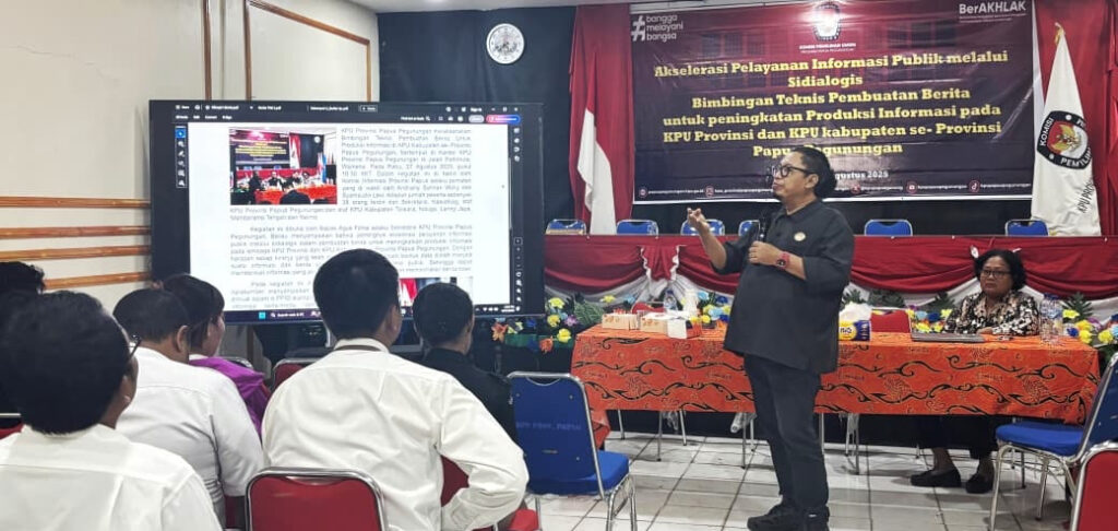 Upaya ini diwujudkan dalam kegiatan Bimbingan Teknis (Bimtek) Pembuatan Berita untuk Peningkatan Produksi Informasi yang dilakukan di Kantor KPU Provinsi PP Wamena, Rabu, 27 Agustus 2025.