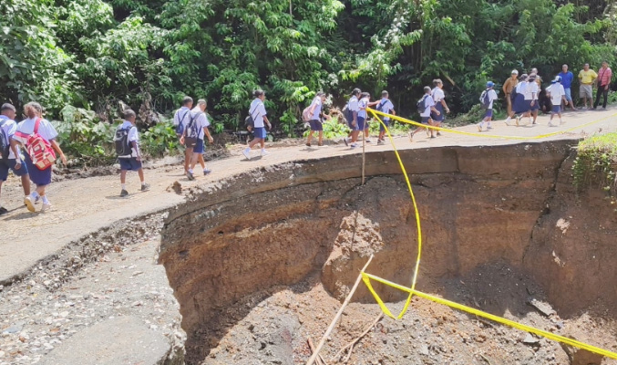 Pada saat peninjauan berlangsung, perhatian Wabup Kepulauan Yapen Roi Palungan juga tertuju kepada sejumlah anak sekolah yang terhambat perjalanan pulang akibat badan jalan terputus.