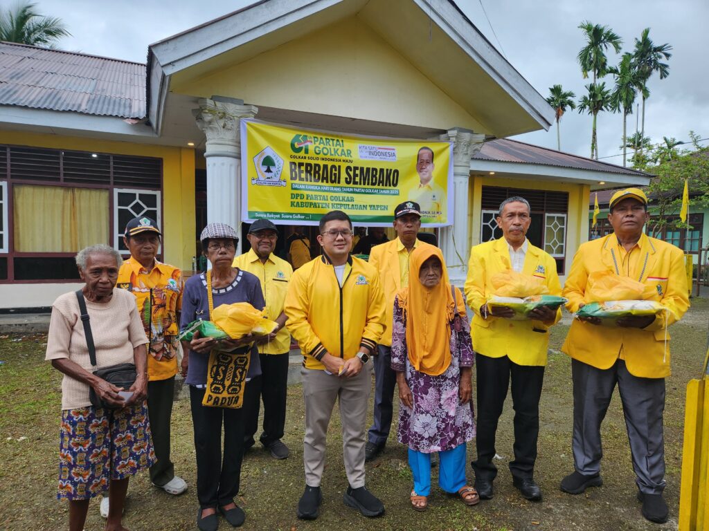 KABARPAPUA.CO, Serui- Pengurus Golkar di Kabupaten Kepulauan Yapen membagikan paket sembako untuk warga kurang mampu, janda, duda dan lansia jelang HUT ke-61 Partai Golkar yang dilaksanakan 20 Oktober 2025.