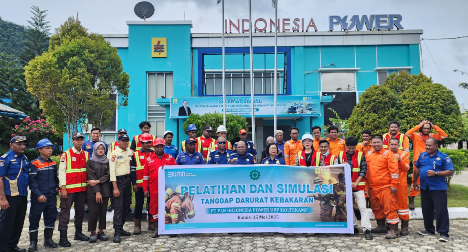 PT PLN Indonesia Power UBP Holtekamp menggelar Pelatihan dan Simulasi Tanggap Darurat Kebakaran di Wilayah PLTU Holtekamp, Kamis 15 Mei 2025. Foto: IP UBP Holtekamp