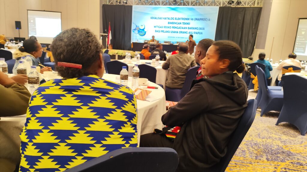 KABARPAPUA.CO Kota Jayapura– Pelaku usaha Orang Asli Papua (OAP) diberikan Bimbingan Teknis Mitigasi Risiko Pengadaan Barang Jasa (PBJ) dan Sosialisasi E-Katalog Versi 6. Kegiatan diikuti 200 pelaku usaha dari Kota Jayapura, Kabupaten Jayapura dan Keerom.