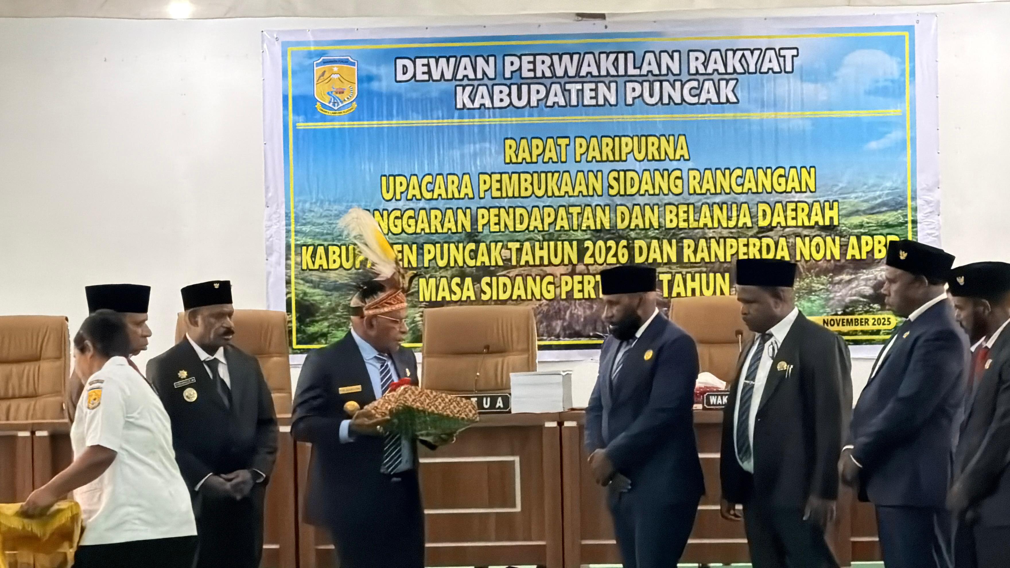Penyerahan dilakukan dalam Rapat Paripurna yang dibuka oleh Ketua DPRK Puncak, Thomas Tabuni dan dihadiri Bupati Puncak, Elvis Tabuni serta jajaran Forkopimda dan pimpinan OPD di ruang sidang DPRK Puncak, Ilaga, pada 26 November 2025.