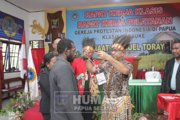 Sementara itu, pembukaan Raker Klasis dan Rapat Kerja Pelayanan Wadah Kategorial Klasis GPI Papua Merauke ditandai dengan penabuhan tifa dan secara simbolis mengenakan tanda peserta. *** (Rilis)