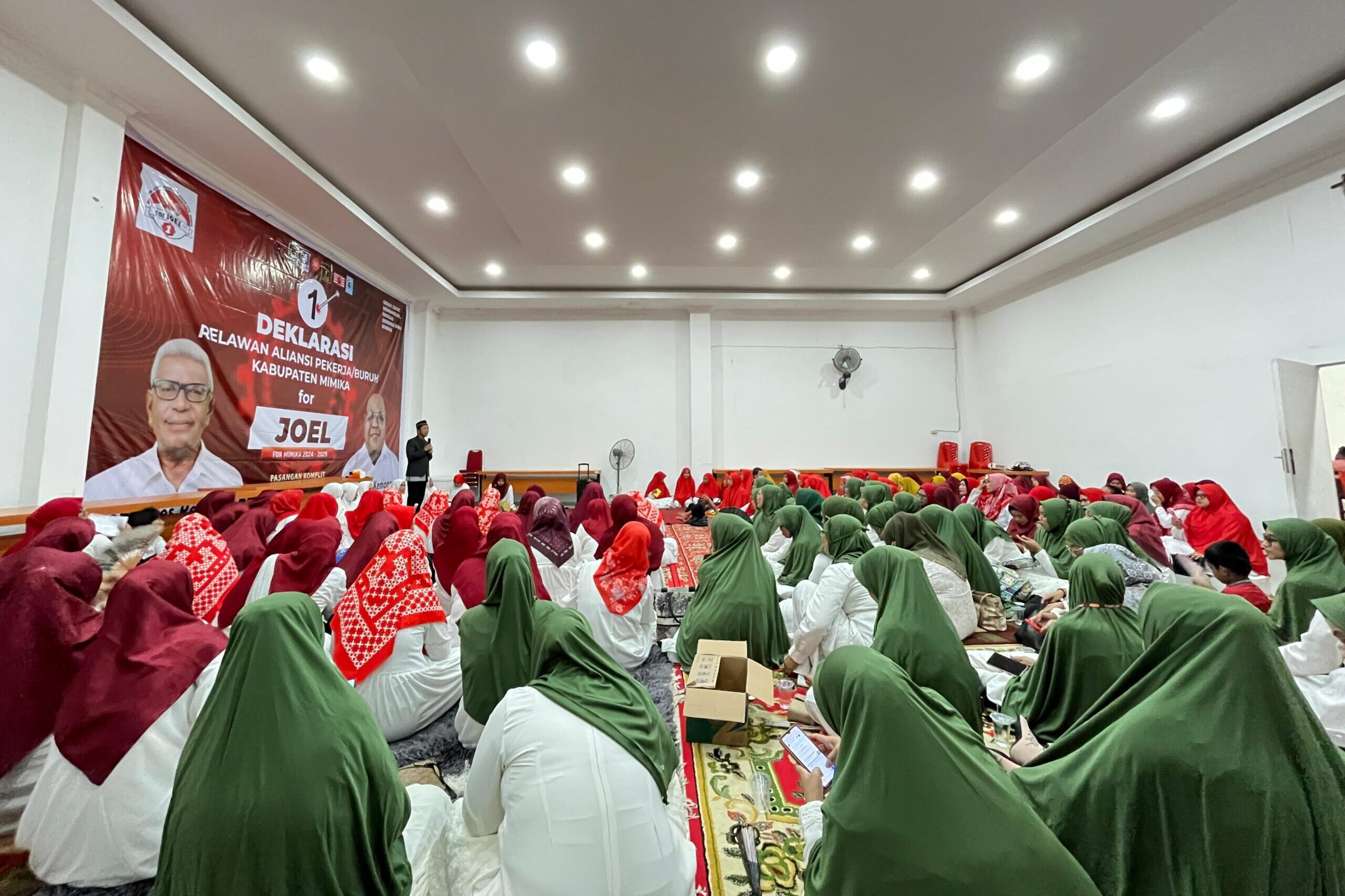 KABARPAPUA.CO, Timika – Relawan Gabungan Muslimah menggelar pengajian bersama untuk penguatan dukungan pemenangan Johannes Rettob – Emanuel Kemong (JOEL) di Pilkada Mimika.