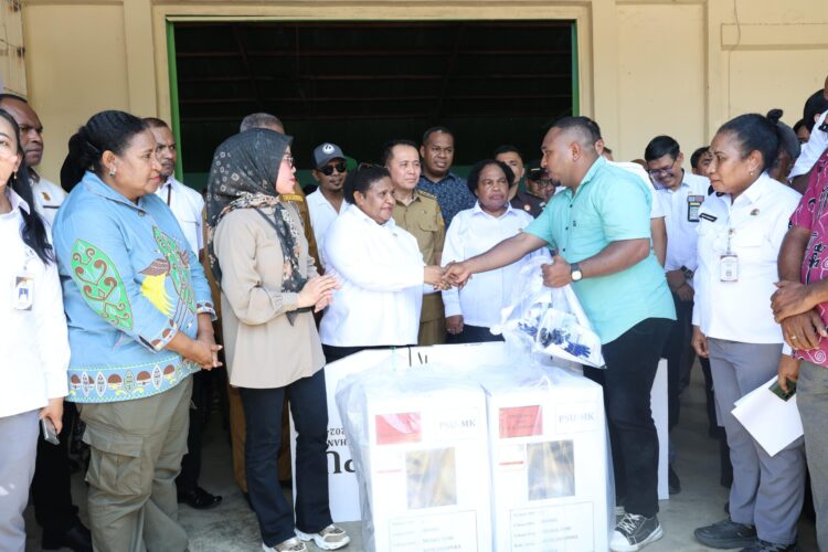 KABARPAPUA.CO, Kota Jayapura– Penjabat (Pj) Gubernur Agus Fatoni bersama Wakil Menteri Dalam Negeri (Wamendagri) Ribka Haluk melepas pendistribusian logistik Pemungutan Suara Ulang (PSU) Pemilihan Gubernur dan Wakil Gubernur ke Kabupaten/Kota se-Provinsi Papua. Kegiatan ini berlangsung di Gudang Logistik KPU Kota Jayapura, Jayapura, Papua, Senin 4 Agustus 2025.