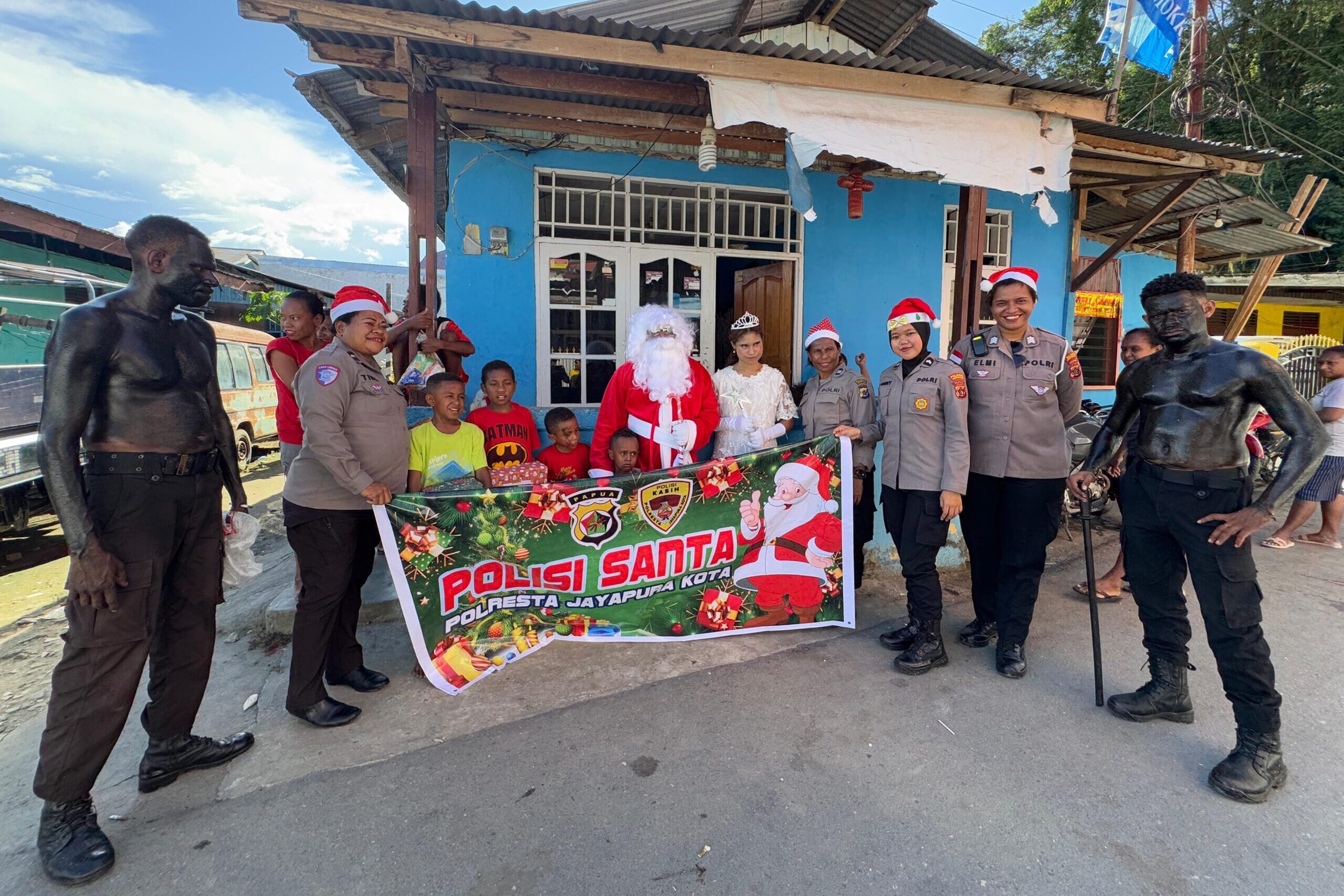 Polisi Santa Polresta Jayapura Kota menebar kebahagian menjelang Natal. (Humas Polresta)