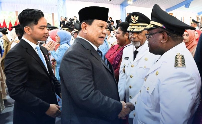 KABARPAPUA.CO, Jakarta– Meki Fritz Nawipa – Deinas Geley resmi dilantik oleh Presiden Prabowo Subianto sebagai Gubernur dan Wakil Gubernur Papua Tengah di Istana Merdeka pada Kamis, 20 Februari 2025.