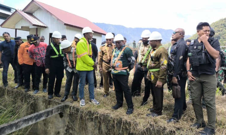 Saat Wakil Bupati Puncak Naftafi Akawal meninjau PLMTH di Kali Ilame Distrik Kago Kabupaten Puncak. (Foto dok: Diskominfo Puncak)