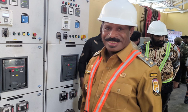 Rombongan Gubernur Papua Tengah dan Pemkab Puncak saat pantau proses air keluar dari Turbin PLTMH.