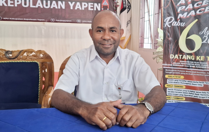 Ketua KPU Kepulauan Yapen, Zakeus Rumpedai. (KabarPapua.co/Ainun Faathirjal)