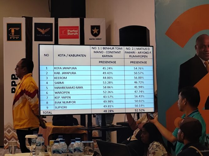 Hasil quick qount pasnagan Mari-Yo pada PSU Pilgub Papua. Foto: Katharina/KabarPapua.co