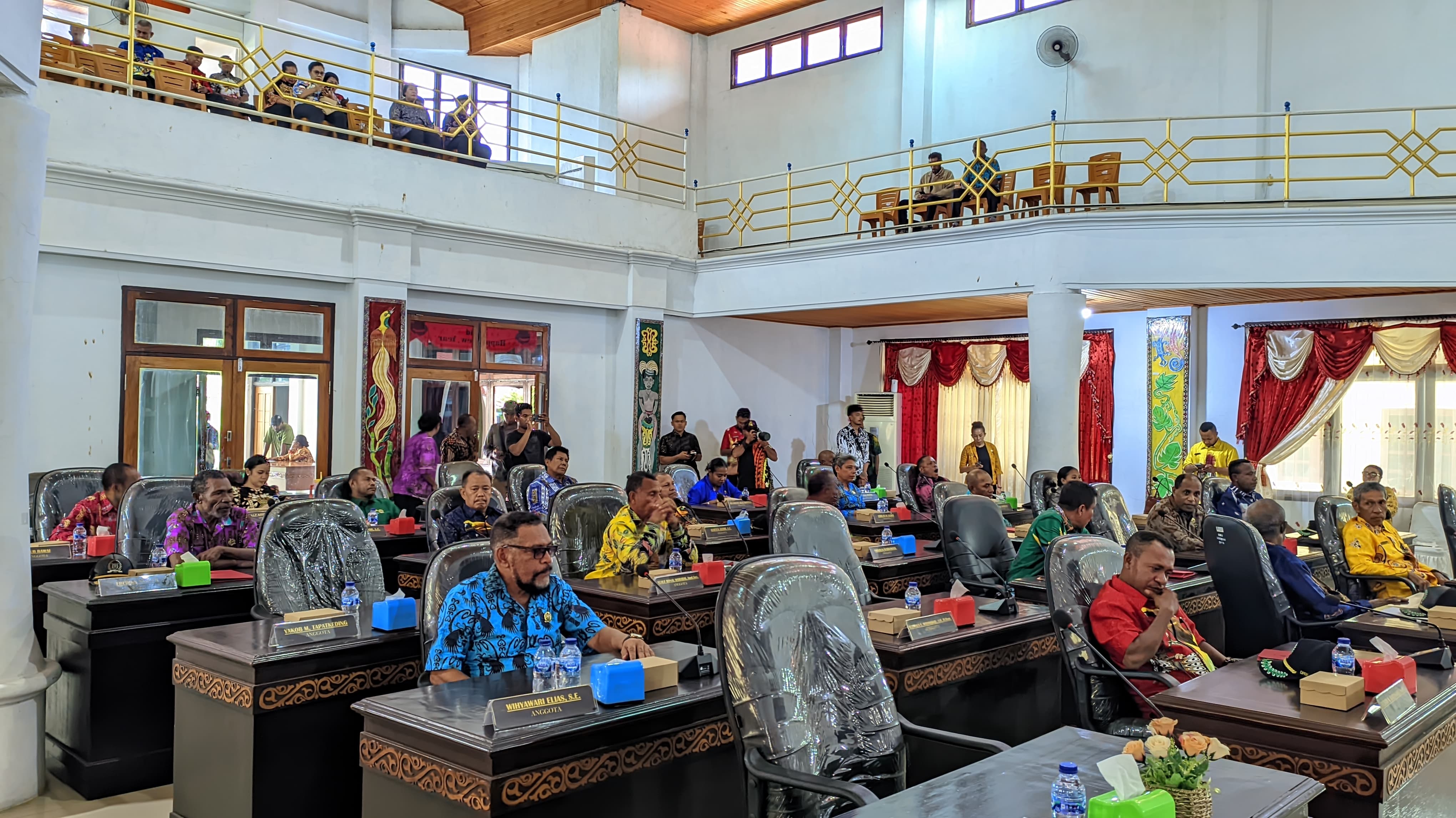 Turut hadir dalam Rapat Paripurna I, Wakil Bupati Kepulauan Yapen Roi Palunga, Ketua DPRK Kepulauan Yapen Ebzon Sembai, Wakil Ketua III DPRK Yapen Bernard Worumi, para anggota DPRK, serta pimpinan OPD di lingkungan Pemerintah Kabupaten Kepulauan Yapen. *** (Ainun Faathirjal)