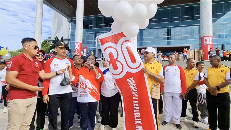 Kegiatan ini diawali jalan santai bersama ribuan warga dari berbagai elemen masyarakat yang mengambil start di halaman Kantor Gubernur Papua, Kota Jayapura, Papua, Jumat, 1 Agustus 2025.
