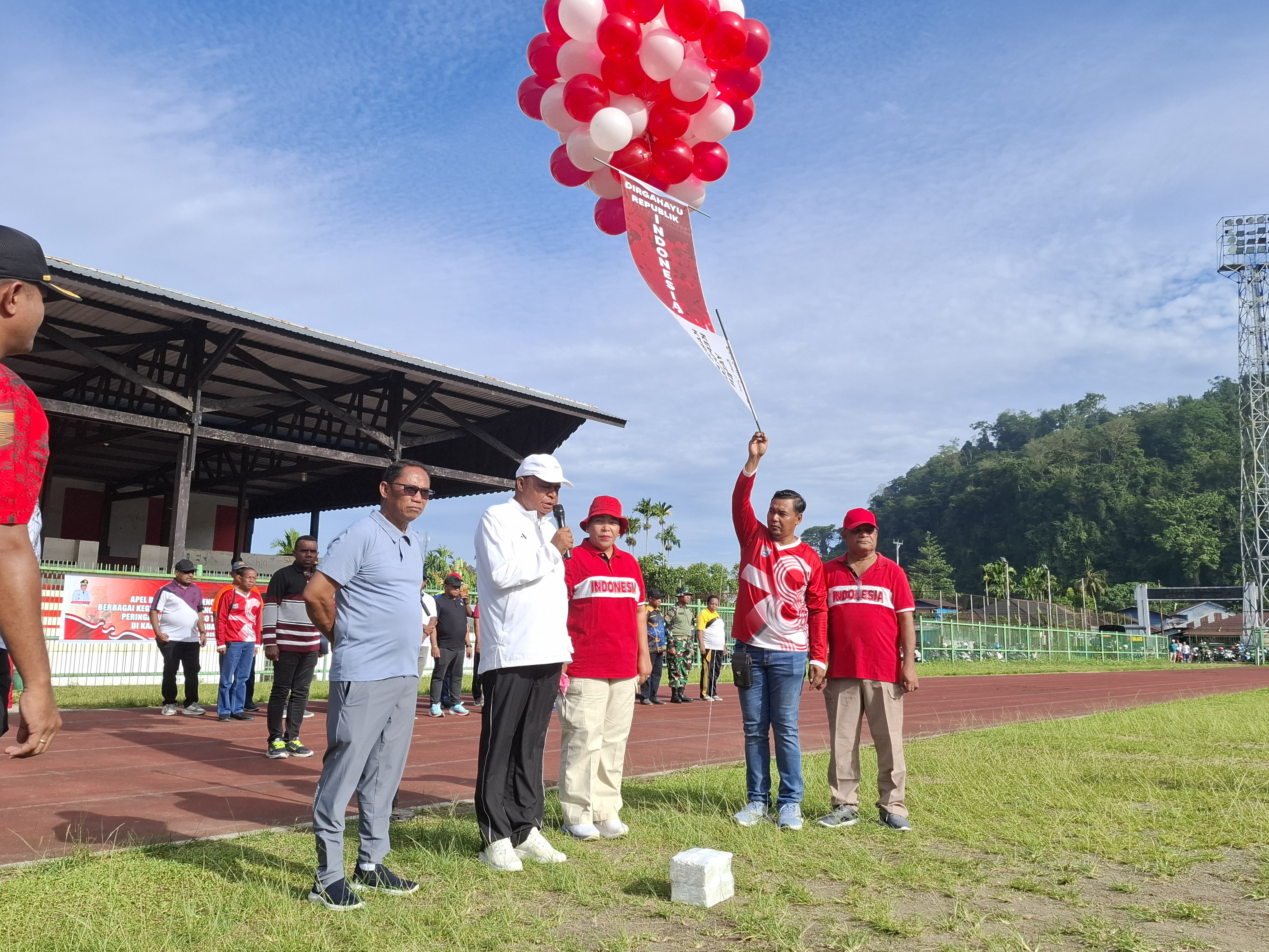 Kegiatan ditutup dengan penyerahan simbol-simbol kebangsaan, pencanangan kegiatan kemerdekaan dengan pelepasan balon udara dan kerja bakti bersama di kawasan Stadion Marora Serui. *** (Ainun Faathirjal)