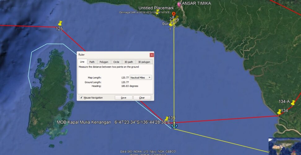 Ilustrasi peta lokasi jatuhnya ABK KM Mulua Kenangan di Laut Arafura. Foto: SAR Timika Perbesar