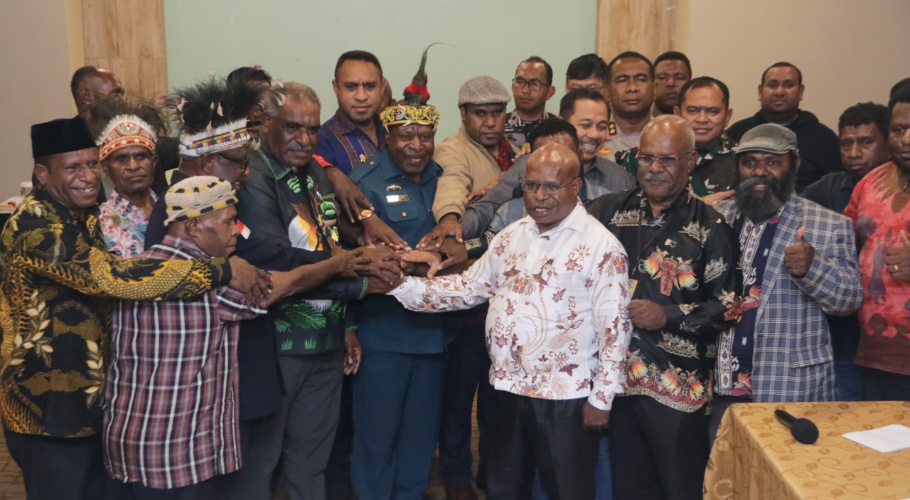 Pertemuan bersama dilaksanakan pada salah satu hotel di Kota Jayapura. Dalam pertemuan itu juga dilakukan tanda tangan pernyataan sikap dan ikrar damai bersama.