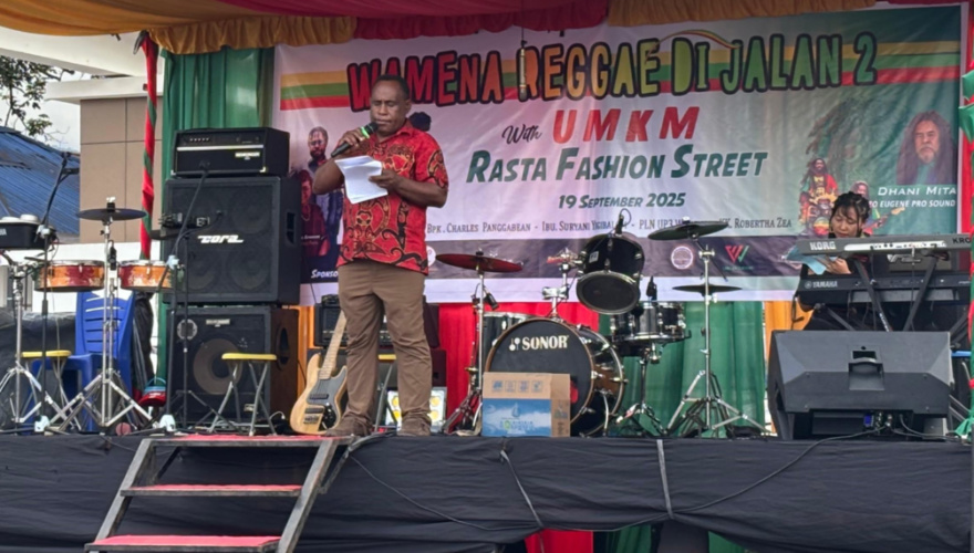 KABARPAPUA.CO, Wamena-  Pemerintah Kabupaten Jayawijaya mendukung Wamena Reggae di jalan bersama UMKM dan Rasta Fashion Show yang dilaksanakan di depan Tugu Salib Wamena, Jumat 19 September 2025.