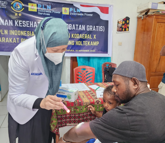 KABAR PAPUA.CO, Kota Jayapura– PLN Indonesia Power UBP Holtekamp Bersinergi Dengan TNI Angkatan Laut Kodaeral X Jayapura menggelar pengobatan gratis di